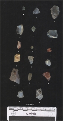 | Description / विवरण | It is a banded agate and translucent in appearance. Flaked, with bulb of percussion on ventral side of the fragment. Flake ridges on the surface. |