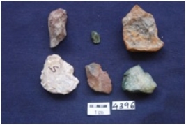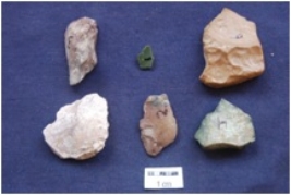 | Description / विवरण | Eight pieces of chert tool manufacturing waste of different shapes and sizes. |