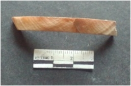 | Description / विवरण | It is a shell bangle roughout, unfinished and unpolished. Broken, saw cut marks are visible, whitish in color. |