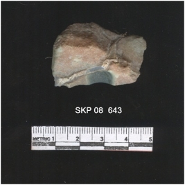 | Description / विवरण | It s a jasper core, lithic debitage. One side is having external patination, calcium impurities on it. No evidence of ripple marks on the surface. It s a primary flake. |