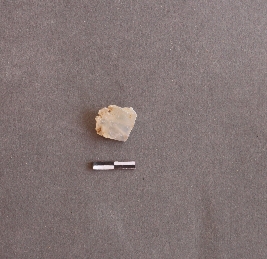 | Description / विवरण | This is a quartz piece with pointed end and a clear bulb of percussion. It has pointed end and sharp edges. |