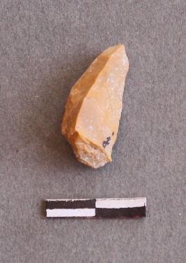 | Description / विवरण | It is a chert flake, with a striking platform, cortex on one end; there are many flake scars with ripples on it. |