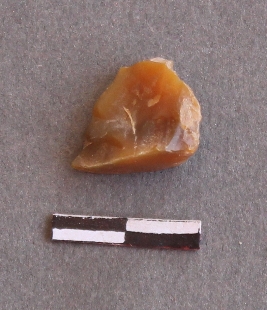 | Description / विवरण | It is lithic debitage. It is chalcedony with one rib on one side flaked and bulb of percussion seen on the other side. |