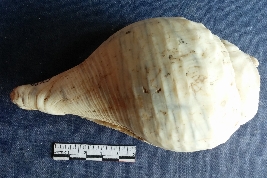 | Description / विवरण | This is a shell portion at its top end is broken and a frw areas shows broken edges. Insect bitten marks due to weathering seen on the sides and surface. A bi-product in the manufacturing unit. |
