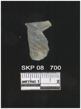 | Description / विवरण | The chalcedony piece is a chipped off fragment with sharp edges. No clear bulb is seen, but ripple marks are evidence. |