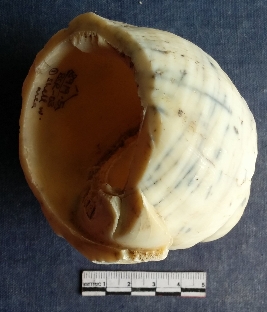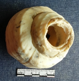 | Description / विवरण | This is a shell, the columella portion along with the tappered end of the shell has been cut ans removed, possibly to make shell objects. The head of the shell is too broken. Bi-product of shell working area. |