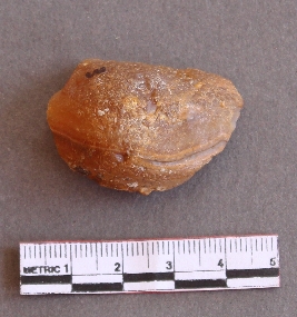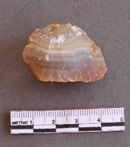 | Description / विवरण | Chalcedony with cortex fully covered on one side, other side shows the bulb of percussion on the striking platform. |