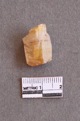 | Description / विवरण | The chalcedony piece has angular sides and rough cubical shape. The piece is pale yellow in colour, and has siliceous impurities. |