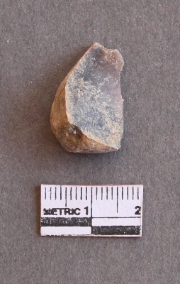 | Description / विवरण | The chert flake has a sharp edge as a result of flaking and a rounded cortex part . |