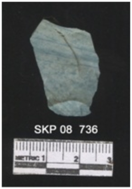 | Description / विवरण | The chert fragment is a bi-product of flaking edges shows sharp ends and bulb of percussion is absent. The color is green probably due to copper cupric intrusions. |