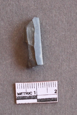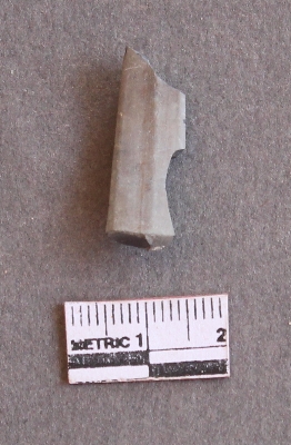| Description / विवरण | The basaltic schist piece is elongated in shape and has even surfaces. The ends as truncated as a result of flaking. |