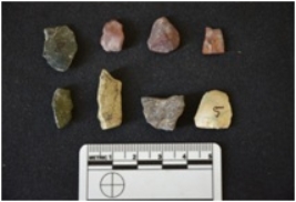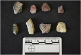 | Description / विवरण | Total lithic debitage 9 Chert - 8, 1 of them is flake has striking platform and bulb on ventral side Crystal - 1 |