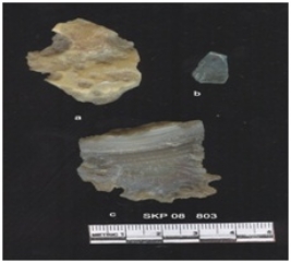 | Description / विवरण | It is a banded agate chunk with cortex and might have been a primary flake, bulb of percussion is seen. |