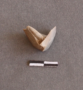 | Description / विवरण | Chert fragment with flaked sharp ends. |