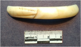 | Description / विवरण | A chalcedony core with platform and fourteen blade scars. |