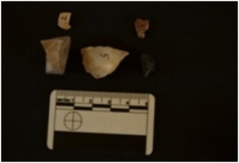 | Description / विवरण | Total No. of debitage 5 Chert 4 Chalcedony 1 |