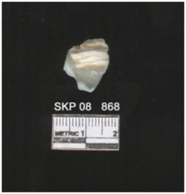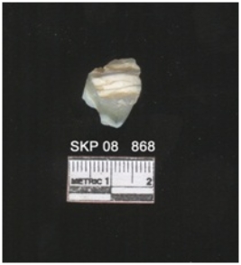 | Description / विवरण | It s a chalcedony banded with some iron impurities on the surface. It has a bulb on the ventral side with a striking platform. |