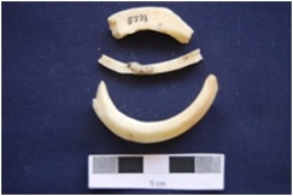 | Description / विवरण | Two Fragment of shell circlets, having rough rectangular section and one has encrustation marks |