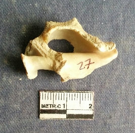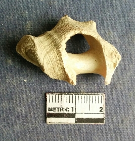 | Description / विवरण | The shell piece is pale white in color. It has surface striations on account of its natural formation. The piece has cut edges with angular points and some surface aberration. The piece is a by product of shell object making process. |