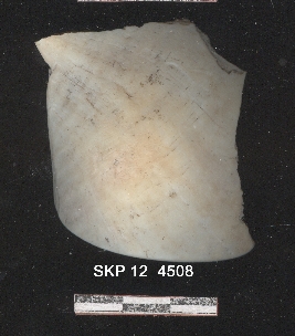 | Description / विवरण | It s a broken shell ladle fragment, whitish in color, complete and polished from both the sides, no decoration on them. |