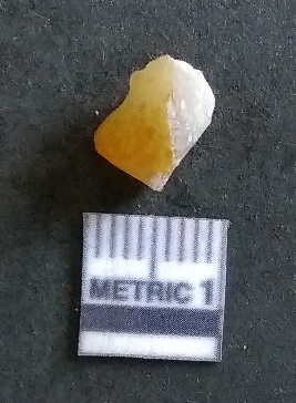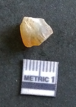 | Description / विवरण | The chalcedony flake is small, with pale coloration and crypto-crystalline matrix. The piece shows prominent flake scars and sharp edges owing to lithic knapping activity. |