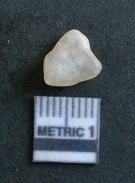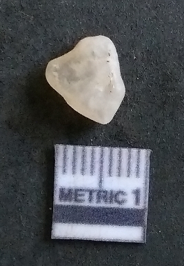 | Description / विवरण | The quartz flake is small, with pale coloration and crypto-crystalline matrix. The piece shows prominent flake scars and sharp edges owing to lithic knapping activity. |