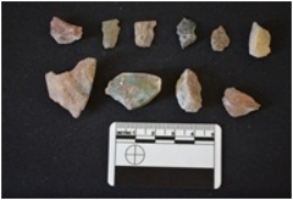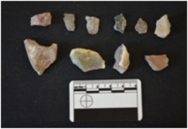 | Description / विवरण | Total No. of debitage chip - 18 Chert - 14 10 Debitage , 4 - Chips Agate - 2 Chalcedony - 2 1 Debitage, 1 - Chip |