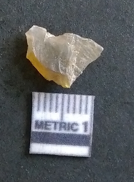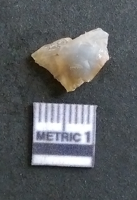 | Description / विवरण | The smoky quartz flake is small, with pale coloration and crypto-crystalline matrix. The piece shows prominent flake scars and sharp edges owing to lithic knapping activity. |