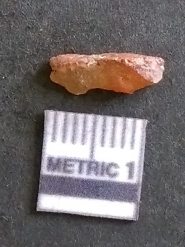 | Description / विवरण | The chalcedony flake is small, with reddish coloration and crypto-crystalline matrix. The piece shows prominent flake scars and sharp edges owing to lithic knapping activity. |