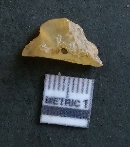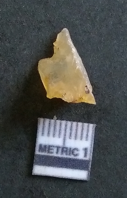 | Description / विवरण | The chalcedony flake is small, with pale coloration and crypto-crystalline matrix. The piece shows prominent flake scars and sharp edges owing to lithic knapping activity. |