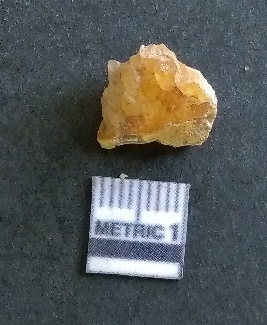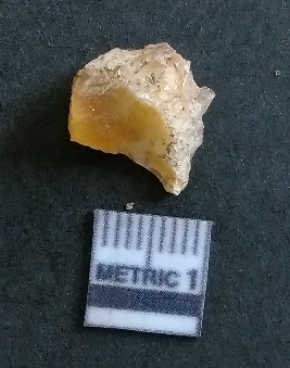 | Description / विवरण | The chalcedony flake is small, with pale coloration and crypto-crystalline matrix. The piece shows prominent flake scars and sharp edges owing to lithic knapping activity. |