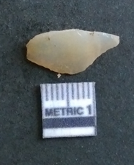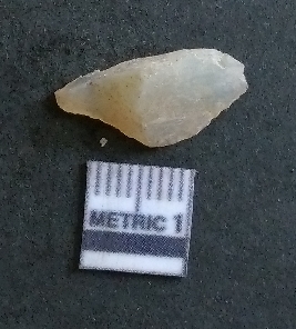 | Description / विवरण | The quartz flake is small, with pale coloration and crypto-crystalline matrix. The piece shows prominent flake scars and sharp edges owing to lithic knapping activity. |