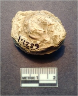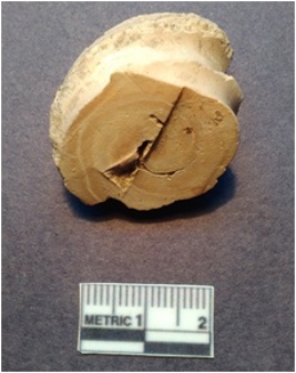 | Description / विवरण | The chank shell piece of bony white color. The piece is flat with natural shell polish and is probably a part of chank object manufacture process. |