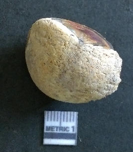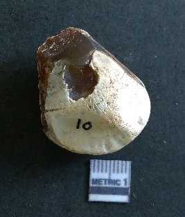| Description / विवरण | The jasper piece has a well-preserved cortex and flaked ends show secondary flaking with numerous flake scars on the surface. The piece is crypto-crystalline in nature and has a deep brown coloration. |