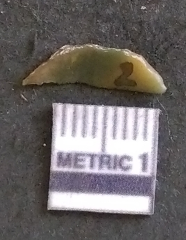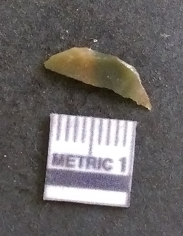 | Description / विवरण | The jasper lunate has a prominent median ridge and flaked edges as a result of lithic knapping. The piece is greenish in colour, with sharp angular ends. |