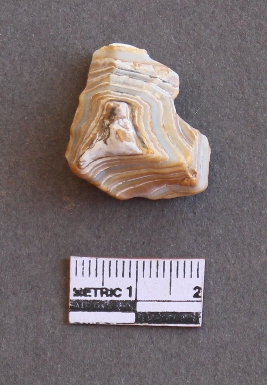 | Description / विवरण | Banded agate bulb of percussion with sharp edges. |