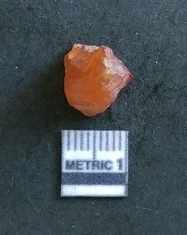 | Description / विवरण | The carnelian piece has roughly rounded edges and a translucent appearance. The piece shows flaked sides, but no sharp edges probably due to rolling. It is a core dressing flake. |