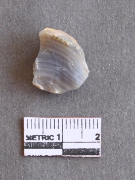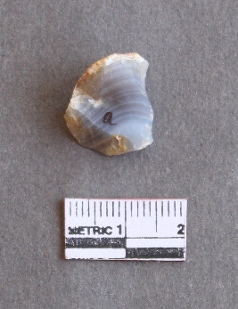 | Description / विवरण | This is a agate fragment with cortex on one corner; bulb of percussion can be seen on another and cut ridges. Smoky and translucent. banded. |