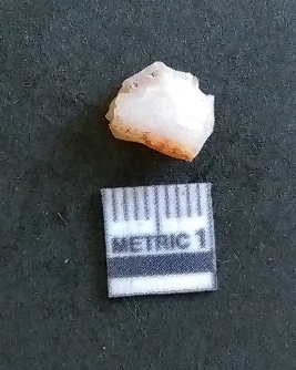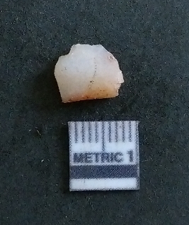 | Description / विवरण | The quartz piece has a sharp end and a bulb of percussion. The piece is white in colour and has flaked edges. |