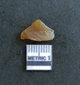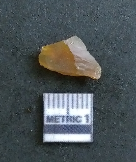 | Description / विवरण | The chalcedony flake is roughly triangular in shape, and pale brown in colour. The piece shows positive bulb of percussion and ripple marks as a result of lithic knapping. |
