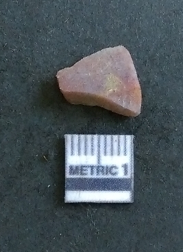 | Description / विवरण | The rosy quartz piece is roughly triangular in shape, with flaked edges and angular ends. The piece has sharp cut ends as a result of flaking. |