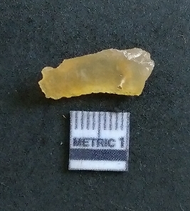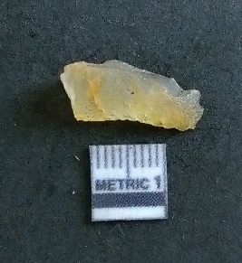 | Description / विवरण | The chalcedony flake is roughly triangular in shape, and pale brown in colour. The piece shows positive bulb of percussion and ripple marks as a result of lithic knapping. |