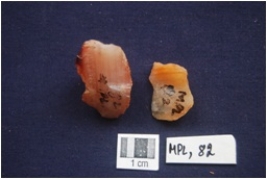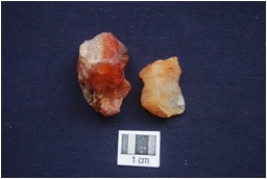 | Description / विवरण | Flakes, by-product of stone tool manufacturing on banded Agate and Chalcedony, given heat treatment. |