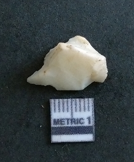 | Description / विवरण | The quartz flake has sharp ends and angular ends as a result of flaking. The piece is milky white in colour and has crypto-crystalline matrix. |