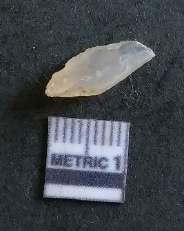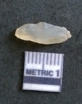 | Description / विवरण | The quartz piece shows flake scars on the surface dur to knapping activity. The piece has pointed ends and truncated flake scars on the flake. The piece is translucent. |