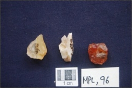 | Description / विवरण | Nodules with flake and blade scars, by-product of stone tool manufacturing on Chalcedony, Chert and banded Agate. |