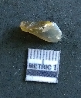 | Description / विवरण | The smoky quartz is roughly squarish in shape, with dark smoky colouration and clear flake scars on the surface. The piece has sharp angular ends and flaked edges as a result of lithic knapping. |