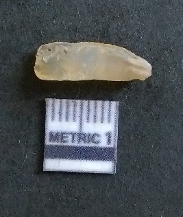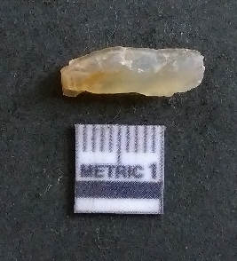 | Description / विवरण | The chalcedony flake is translucent in appearance, and has pale yellow coloration. The piece has flake scar on the surface and sharpangular edges as a result of flaking. |