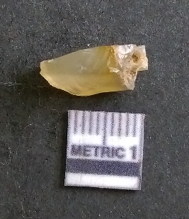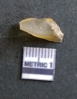 | Description / विवरण | The chalcedony flake is translucent in appearance, and has pale yellow coloration. The piece has flake scar on the surface and sharpangular edges as a result of flaking. |