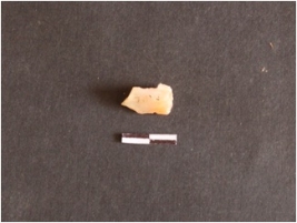 | Description / विवरण | It is a chalcedony flake, with crested ridges and sharp pointed end. A median ridge is visible. The color is pale yellow. |